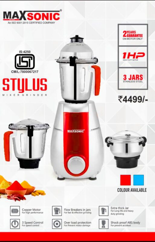 Maxsonic Mixer Grinder Original price was: ₹4,499.00.Current price is: ₹4,100.00.